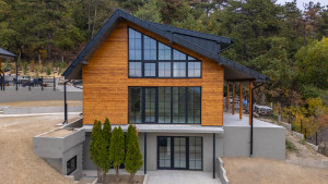 - Az épületek harmonikusan illeszkednek a természeti környezetbe, a kertben cserjékkel, zöld növényzettel való vizuális átmenet kerül kialakításra