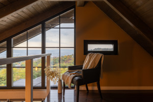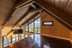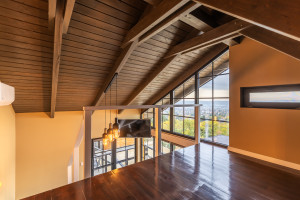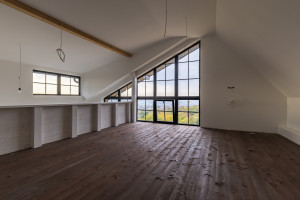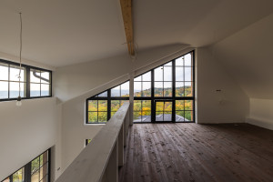 - Az emeleten egy napfényes, panorámás közösségi tér kapott helyet, erkélykapcsolattal, ahonnan egy lépcsőn keresztül közelíthető meg a galéria, amely igény esetén zárt szobává is alakítható.