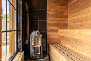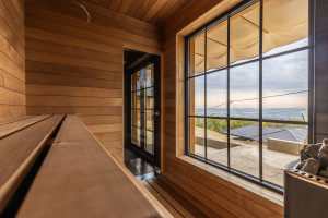 A szaunázás élményét pedig tovább fokozza, hogy a biztonsági ablakon keresztül gyönyörködhetünk a panorámában, így testünk és lelkünk is feltöltődhet a megnyugtató látvány által.