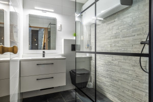 - A felső szinten egy kádas fürdőszoba, valamint egy galériás, jelenleg nyitott, de igény esetén könnyedén zárttá alakítható 34 nm-es szoba kapott helyet.