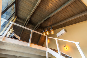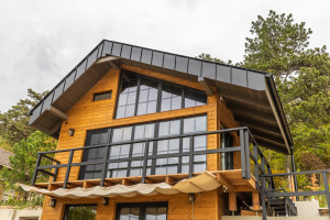 Kisebb ház (vendégház): az 50 nm-es, 1+1 szobás, galériás kialakítású kisebb épülethez egy 24 nm-es terasz, egy külön 24 nm-es grillterasz, valamint egy 6,5 nm-es erkély is tartozik.