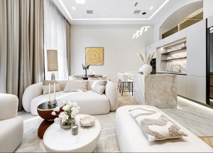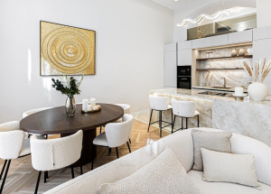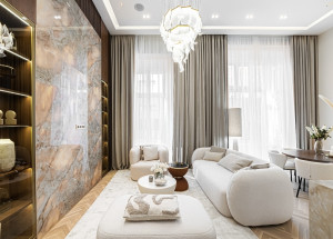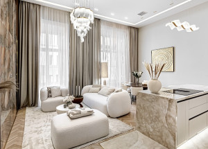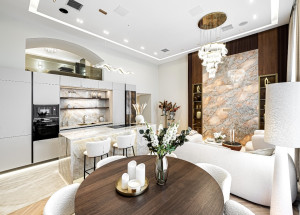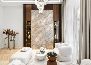 A belsőépítész által megálmodott enteriőr a kortárs stílust és az otthonos harmóniát ötvözi.