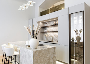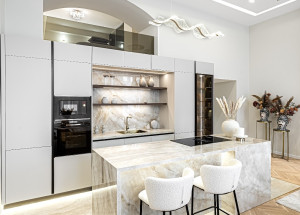 Teljesen gépesített olasz konyha konyhaszigettel és bárpulttal