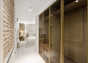 A 4,65 méteres belmagasság lehetővé tette egy praktikus galériaszint kialakítását, így a 74 nm-es alsószinten tágas amerikai konyhás nappali, hálószoba és zuhanyzós fürdőszoba, míg a 31 nm-es emeleten egy exkluzív, saját fürdős hálószoba kapott helyet.